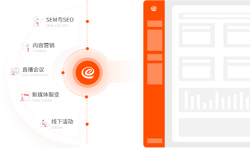 集成搜索引擎SEM、SEO、內(nèi)容營銷、直播、新媒體裂變、線下活動(dòng)等營銷工具,助力企業(yè)大數(shù)據(jù)獲客;